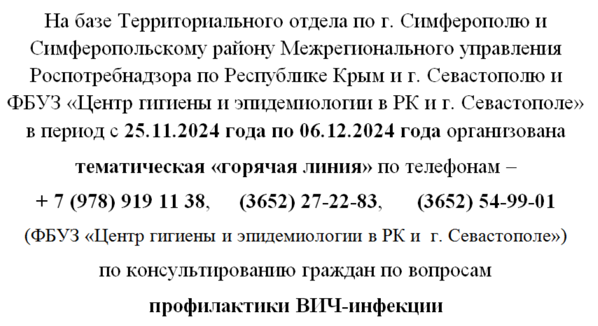 23 декабря 2025 г.Межрегиональное управление Роспотребнадзора по Республике Крым и г. Севастополю с целью реализации мероприятий, направленных на предупреждение возникновения и распространения ВИЧ-инфекции